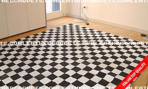 • Tappeto patchwork in pelle bovina colore bianco e nero.