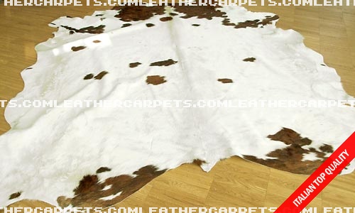 • Pelle bovina manto tricolore a macchie naturali MOLTO PARTICOLARI. Tappeto bianco latte con pelo medio molto soffice. Tali macchie sono molto rare nei tricolori.