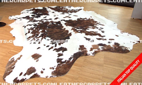 • Pelle bovina manto colore e macchie naturali bianco, marrone e macchiette nere. Pelle con contrasto cromatico forte e macchie rade ma ben distribuite.Molto molto morbido.